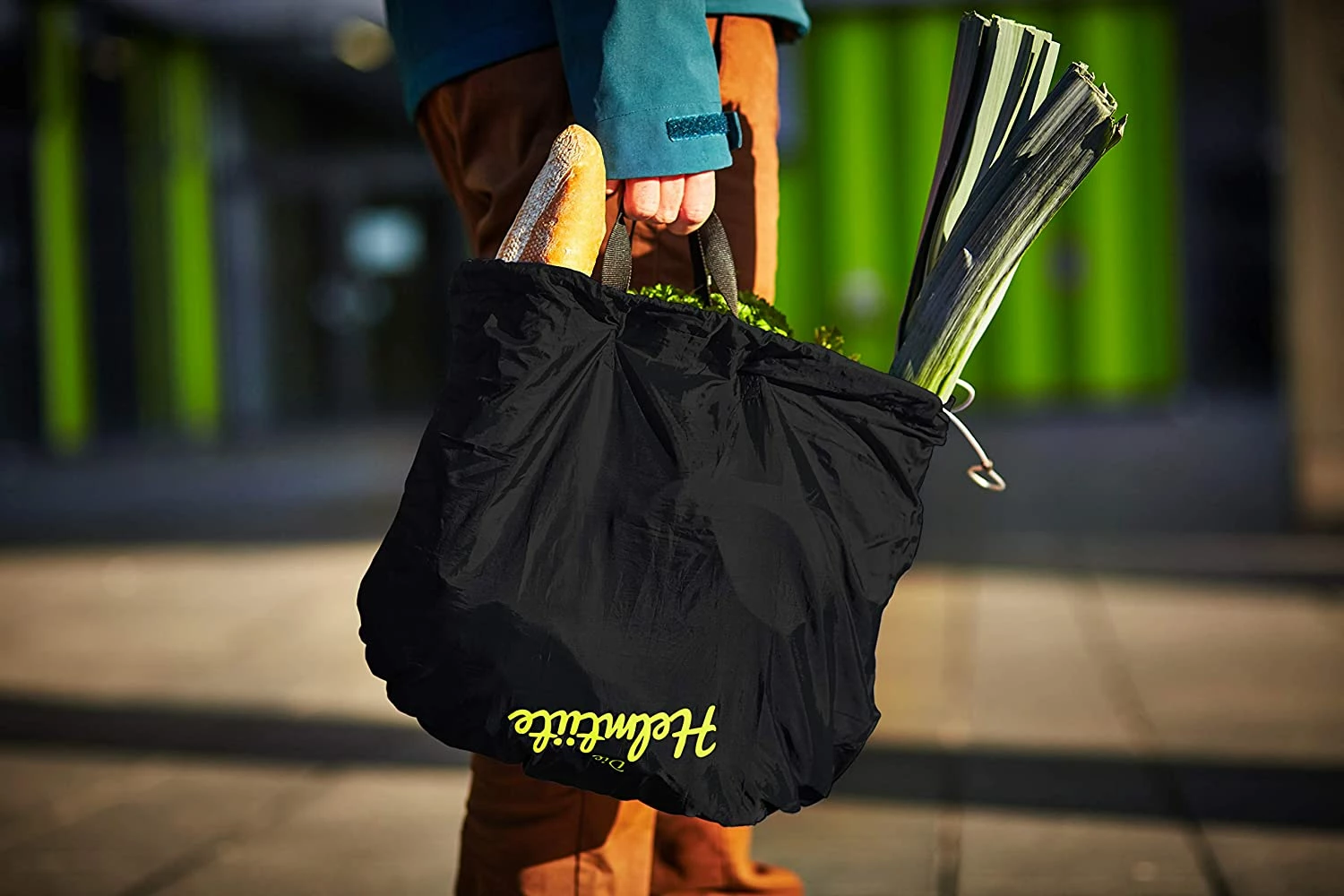 Die Helmtüte schützt ebenso deinen Fahrradsattel vor Nässe und Schmutz. Dank integrierter Griffe kann die Helmtüte auch als Einkaufstasche verwenden werden.