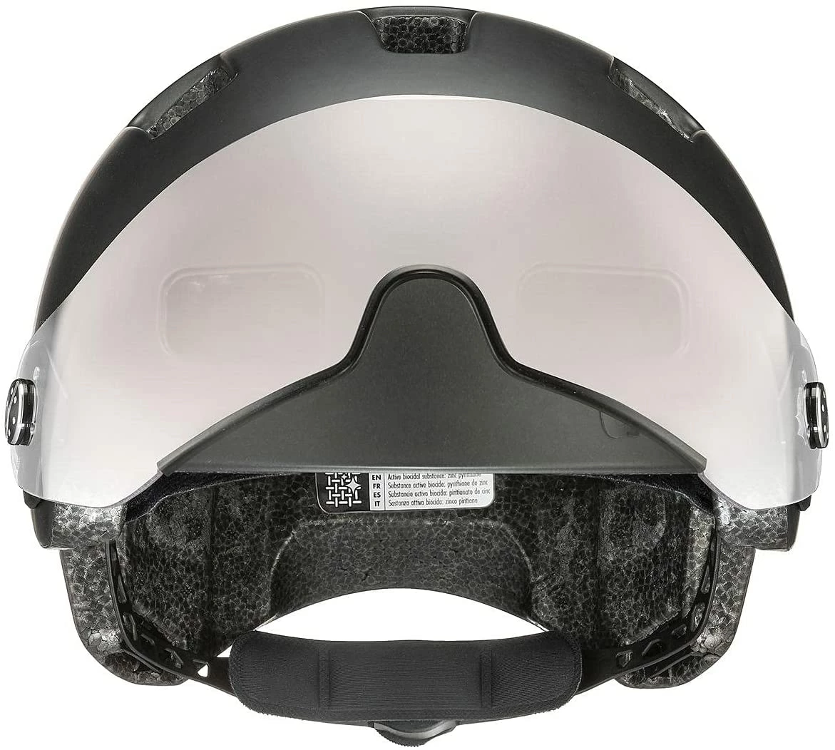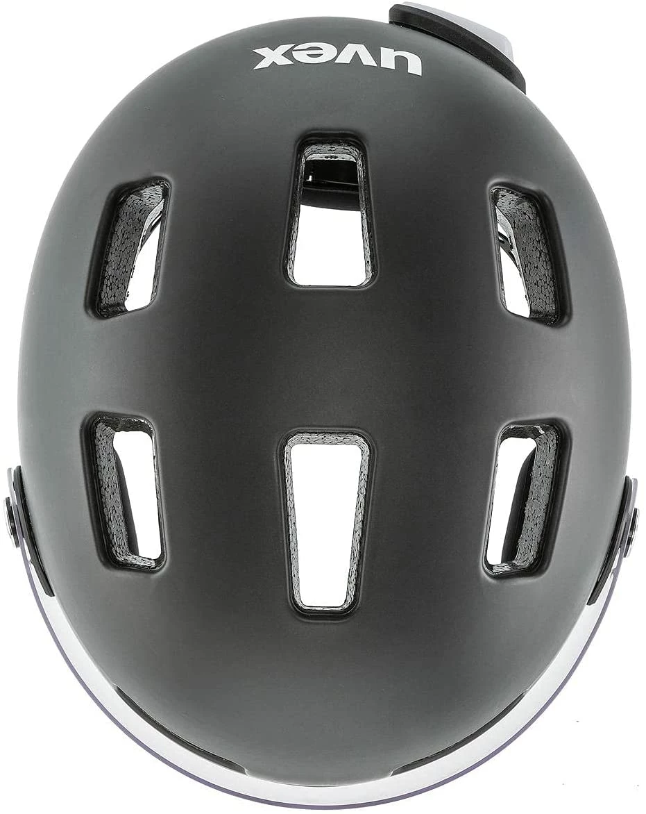 Die gute Passform der tief sitzenden Helmschale wird unterstützt durch den 3D-Verstellmechanismus. Das herunter klappbare Visier ist leicht getönt und verspiegelt und schützt die Augen bei Tag und auch in der Dämmerung. Brillenträger, die Ihre optische Brille darunter tragen können, werden den uvex rush ganz schnell schätzen lernen.